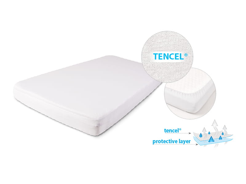 - Warstwa wierzchnia 100% tencel, warstwa nieprzemakalna: 100% PU